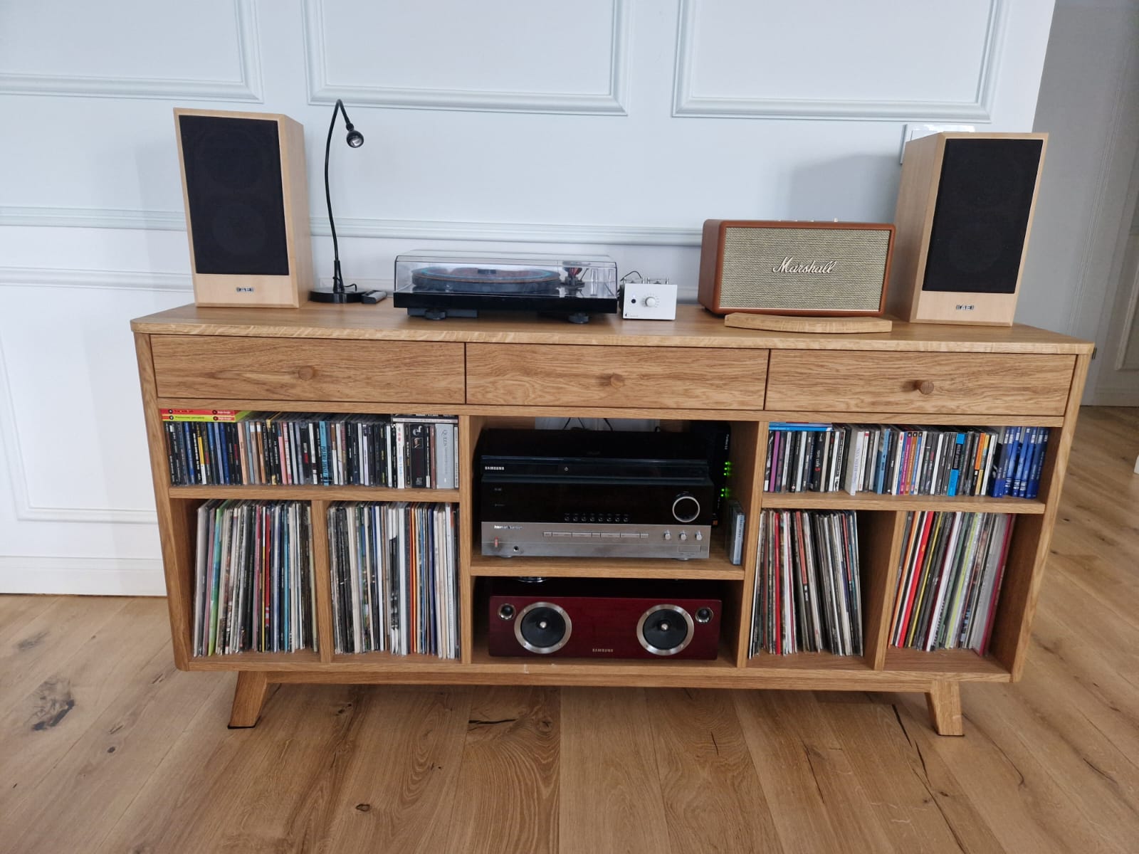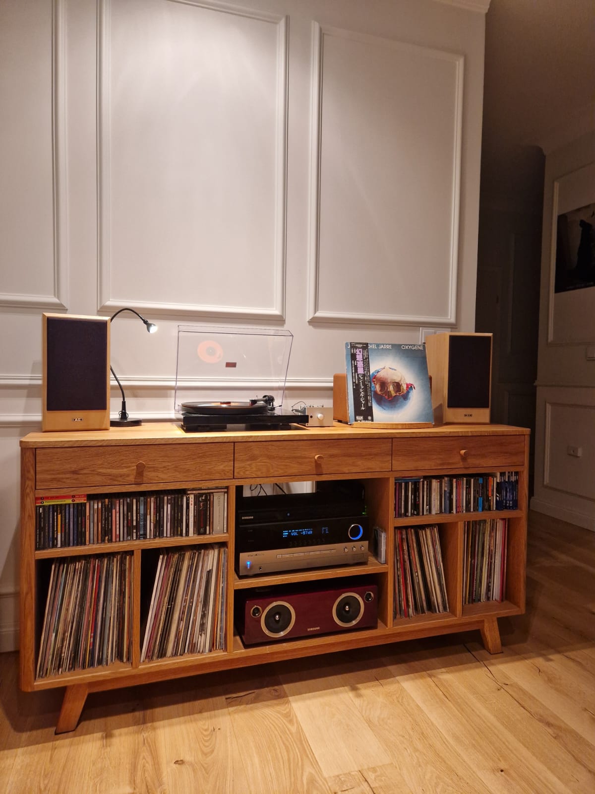 Dębowa komoda na płyty winylowe i CD – funkcjonalność w klasycznym wydaniu