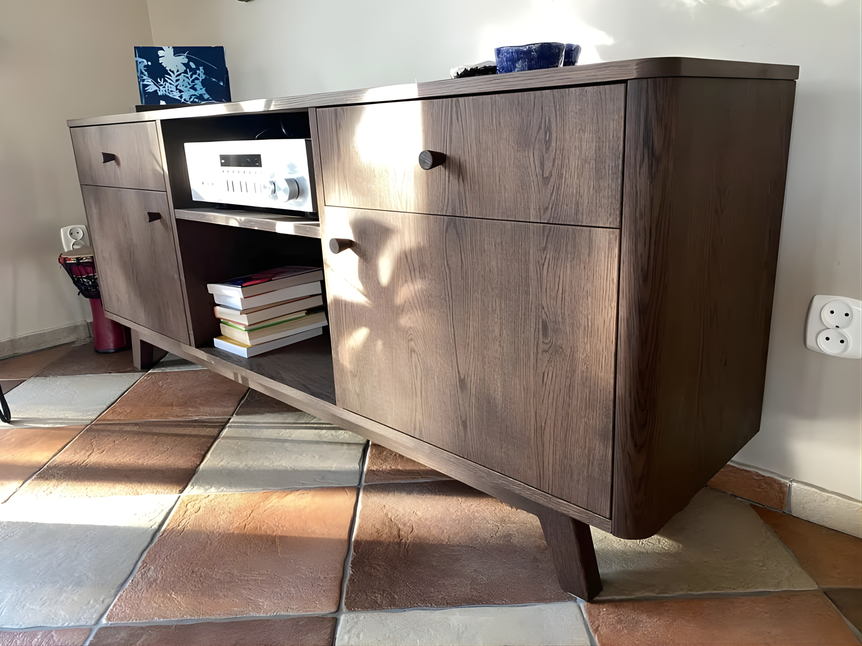 Dębowa komoda RTV na płyty winylowe – połączenie funkcjonalności i elegancji
