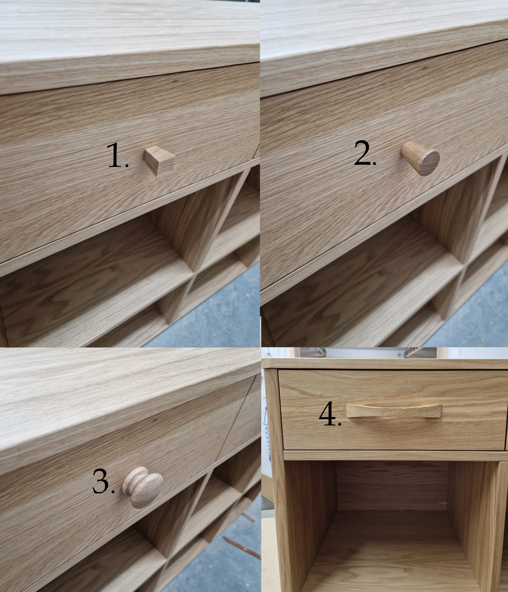 - Drewno dębowe: dla klientów ceniących najwyższą jakość wykonania materiałów możemy wykonać mebel w całości z drewna dębowego ( poza plecami/ ścianą tylną)