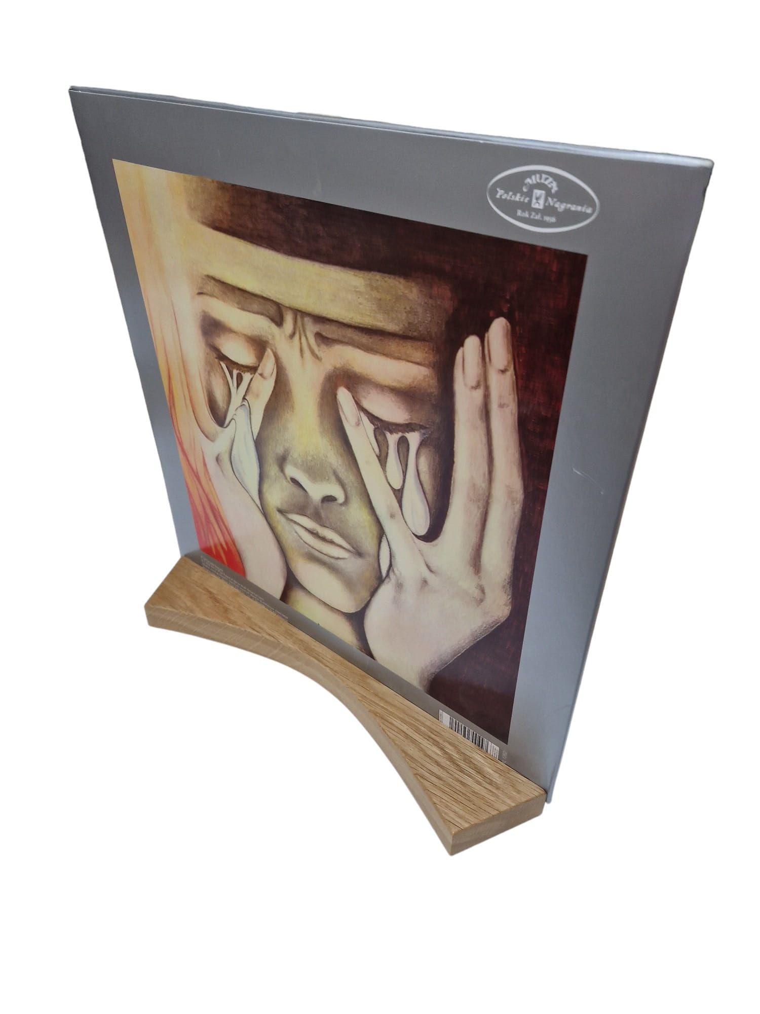 Dębowy stojak na płytę winylową "Now playing"