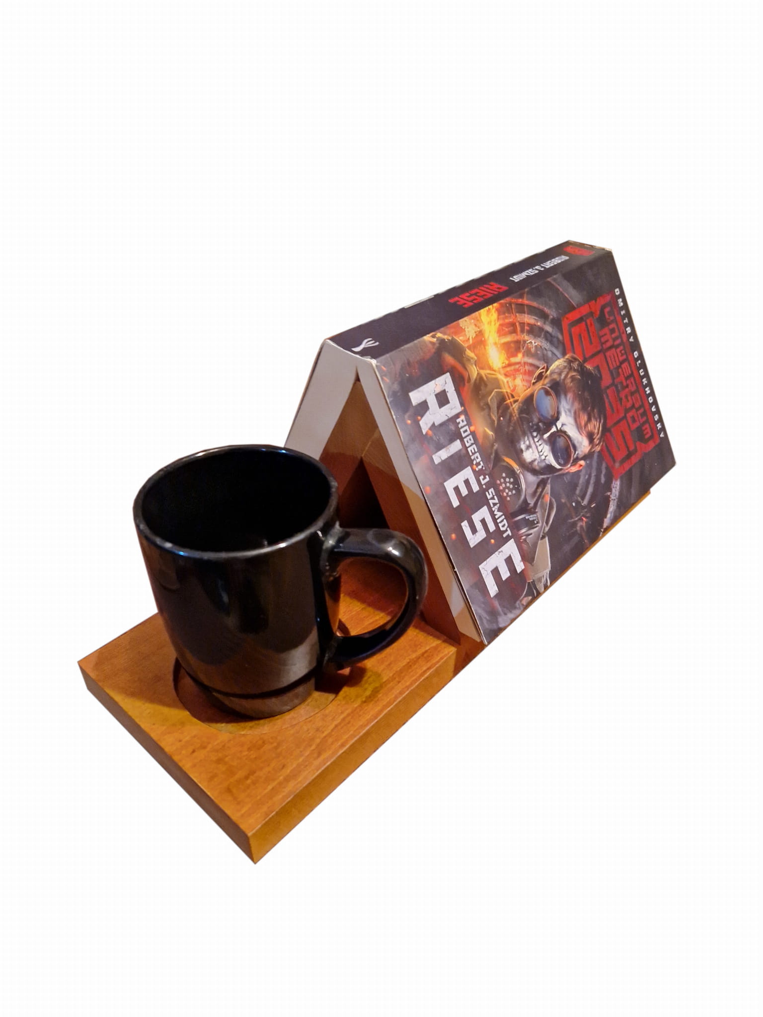 Podstawka na książkę i kubek wykonana z drewna bukowego,