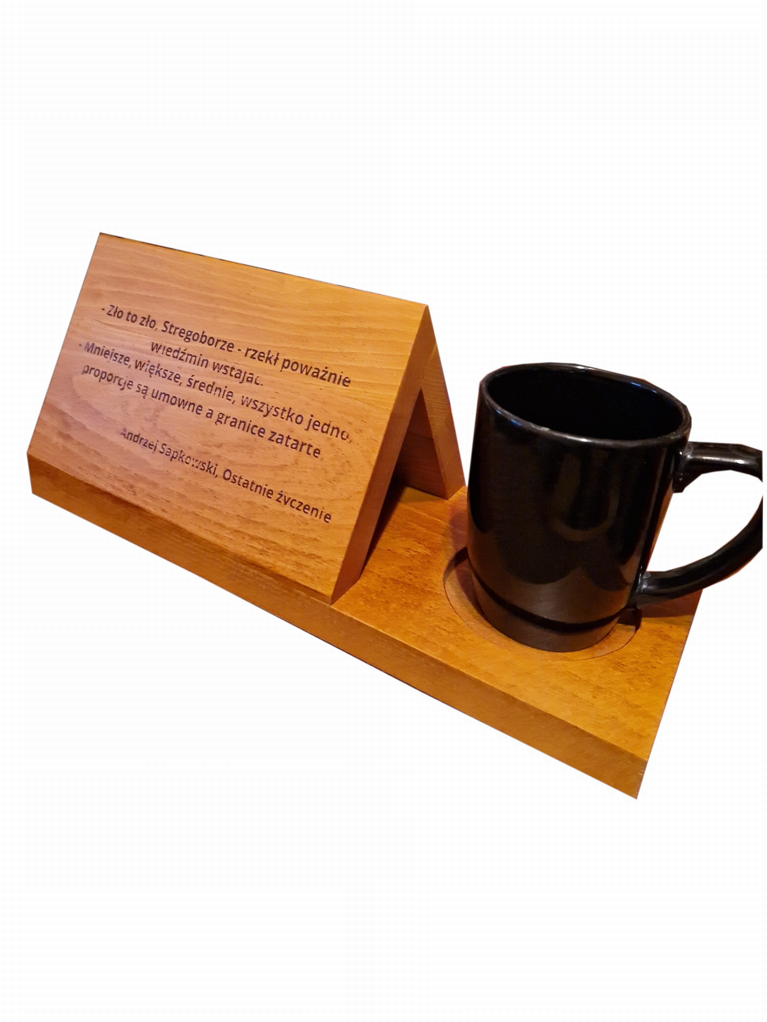 Podstawka na książkę i kubek wykonana z drewna bukowego,