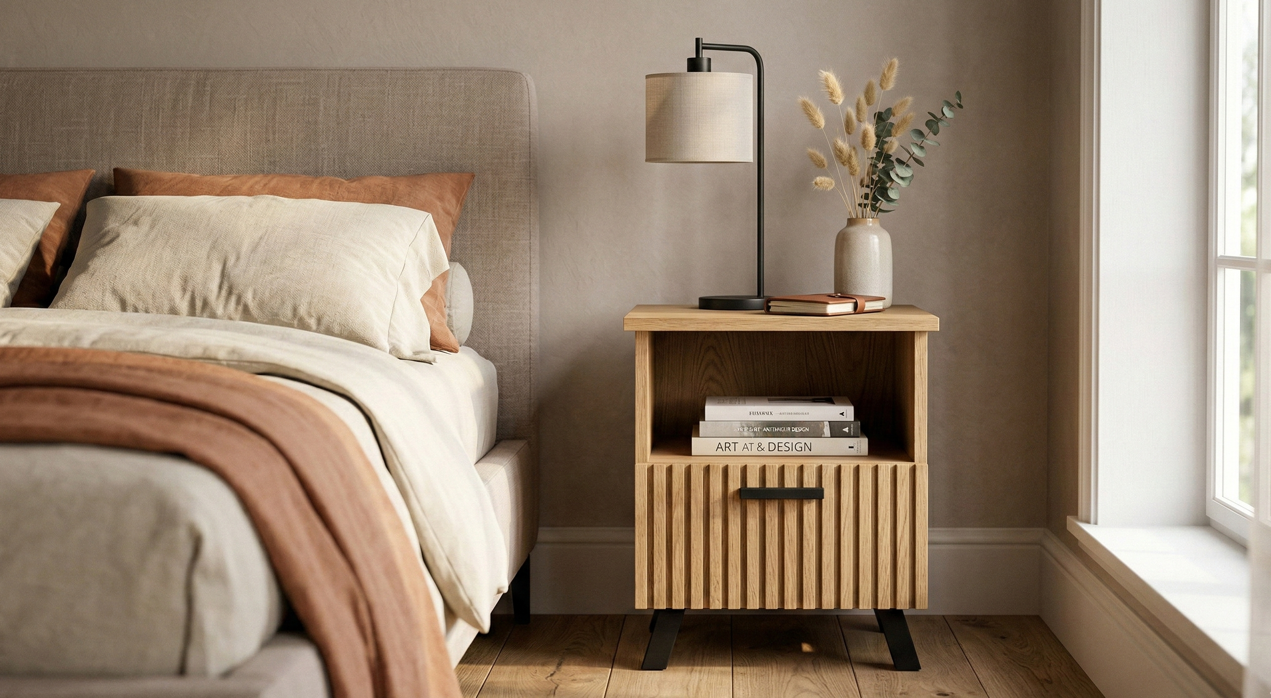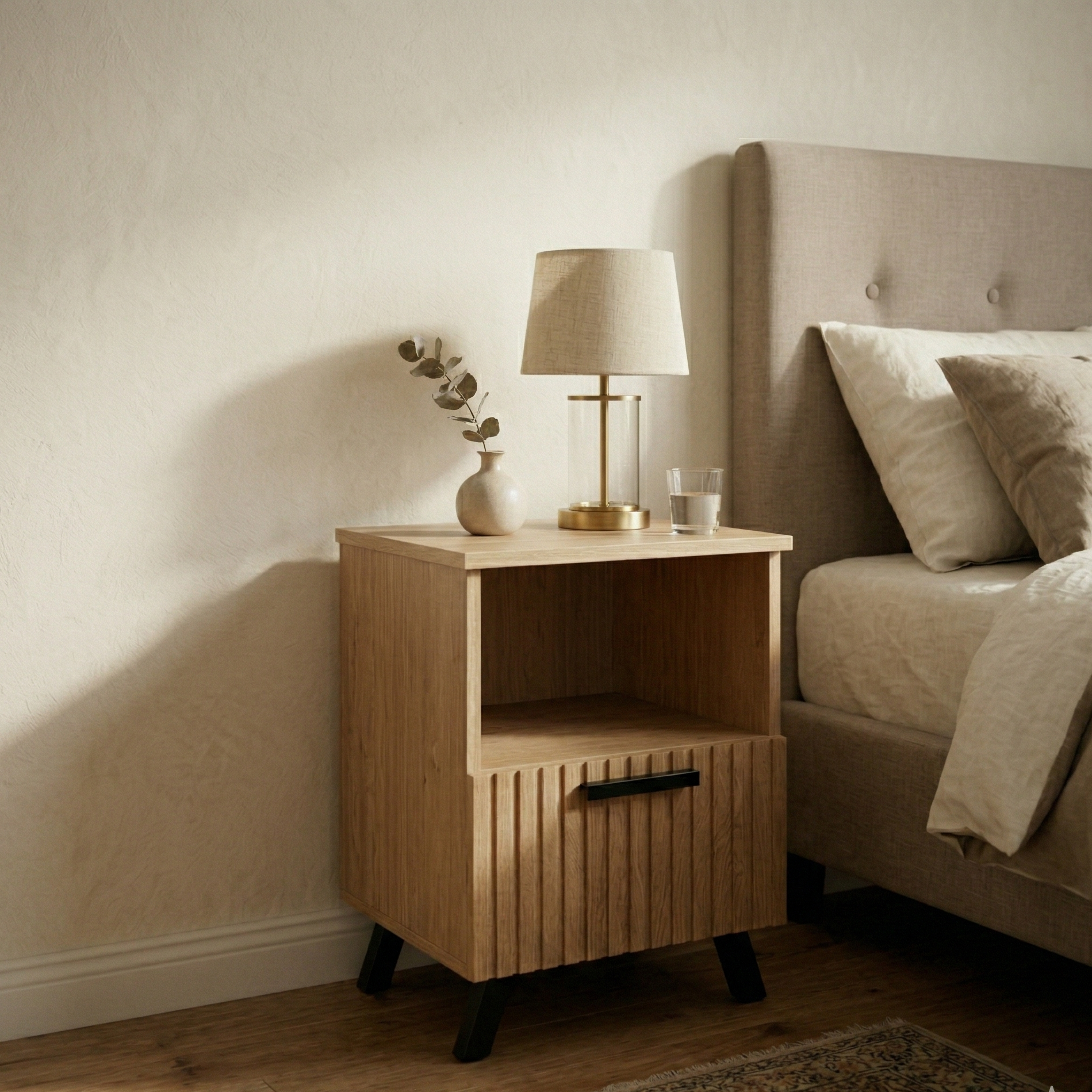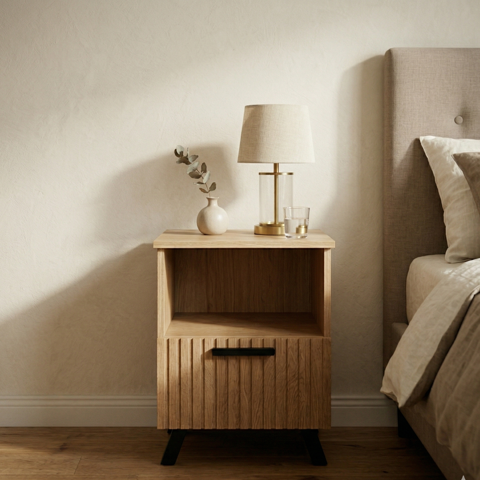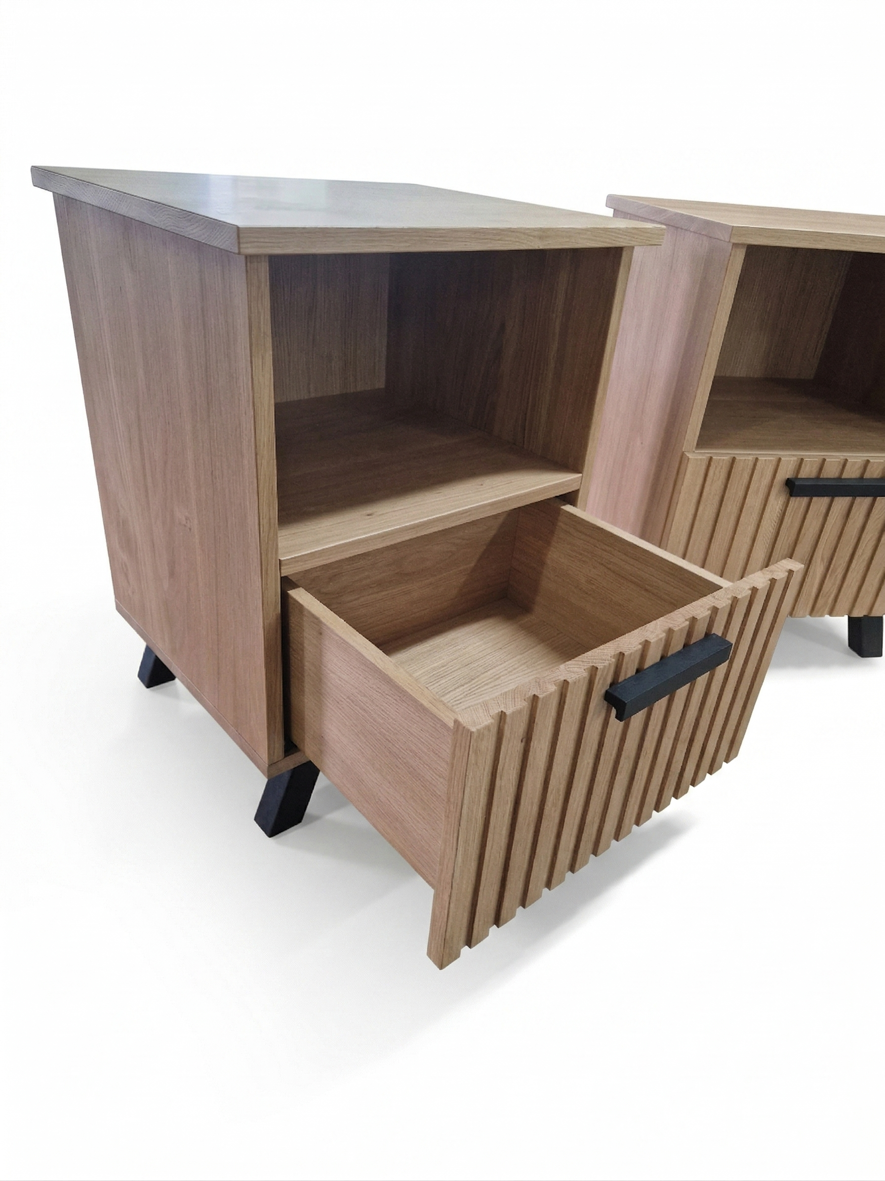 Nowoczesna Dębowa Szafka Nocna z Ryflowanym Frontem